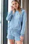 - В основе изделия – материал French Terry: плотное трикотажное полотно, имеющее гладкую текстуру с лицевой стороны и петельчатую обратную поверхность.